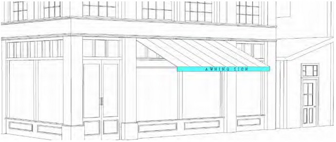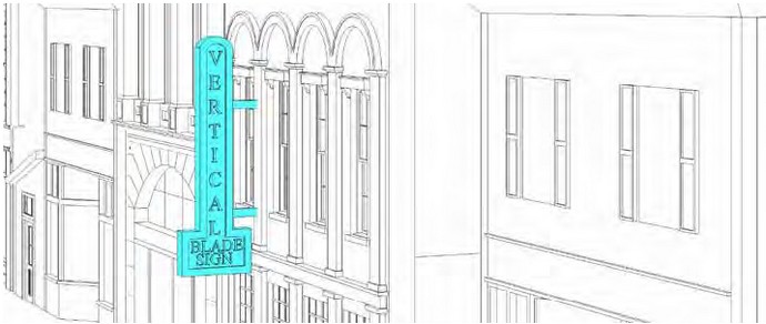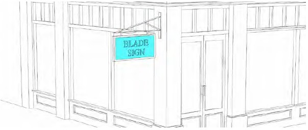 (22) Overhang into Right-of-Way. No Sign may be within or overhang a public right-of-way other than a Wall Sign that does not overhang such right-of-way more than 15 inches, a Blade Sign, a Vertical Projecting Sign, a Marquee Sign, or an Awning Sign.